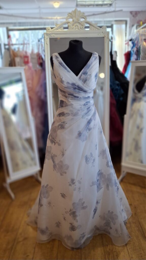 Beautiful White & Blue Floral Bridal Gown UB1895 Only £525 !!!