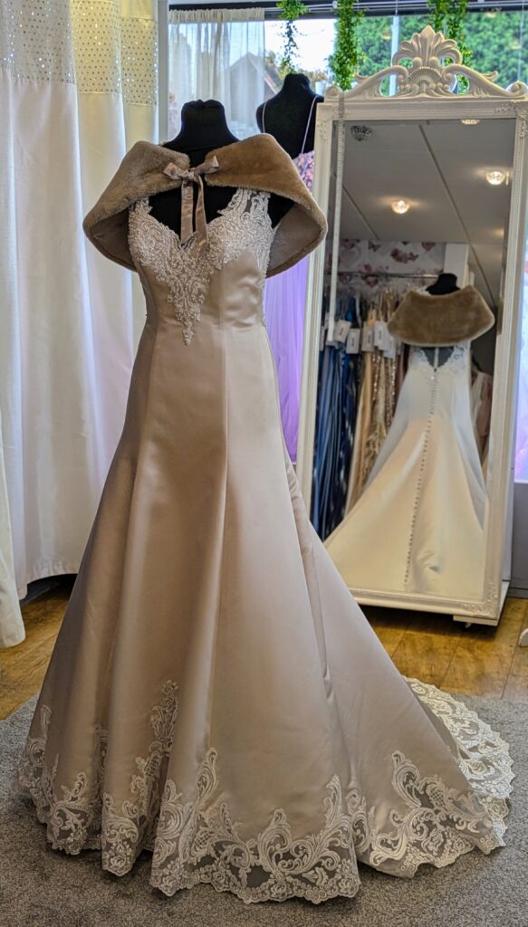 Beautiful Champagne and Ivory Satin Bridal Gown UB2187 £525 (stole sold separately)